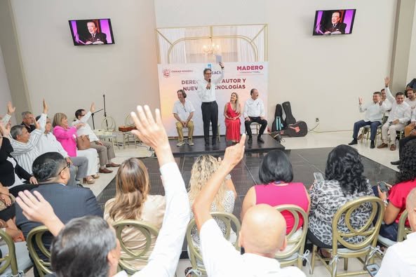 Lo anterior tuvo lugar en el foro “Derechos de autor y los retos de la tecnología”, en el que se contó con la participación de destacados compositores, directores y productores mexicanos como: Guillermo Méndez Guiu y Guillermo Muñoz, presidente y vicepresidente del Comité de Vigilancia de la SACM; Mary Morín Aguilera, Gil Rivera y Bruno Danzza, vocales del Consejo Directivo de la misma sociedad; además de Omar Lugo Andere, Hugo Péreznegrón, Eduardo Echevarría y Luis Enrique Montes García, delegado de la SACM en Tamaulipas.