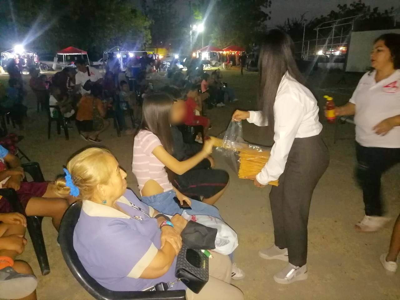 Durante la función, la regidora Astrid Sontoya Muller convivió de manera cercana con las familias, saludando personalmente a cada asistente y entregando ricas botanas para que la experiencia fuera aún más especial.