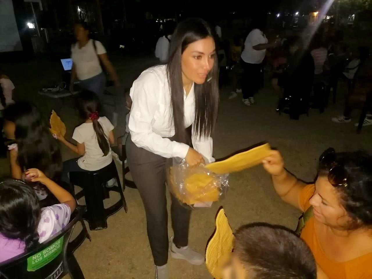 Durante la función, la regidora Astrid Sontoya Muller convivió de manera cercana con las familias, saludando personalmente a cada asistente y entregando ricas botanas para que la experiencia fuera aún más especial.