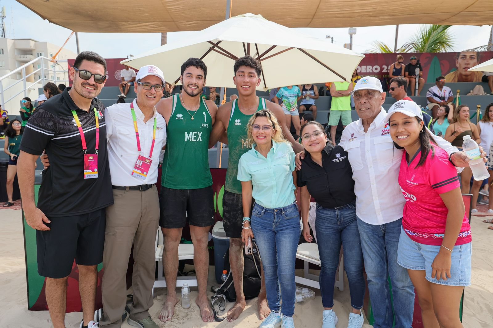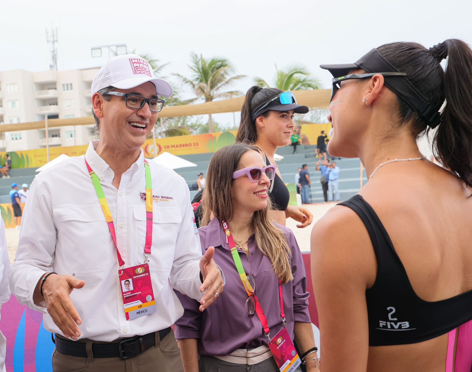 El presidente municipal Erasmo González Robledo acompañado de su esposa Dunia Marón Acuña, presidenta del sistema DIF; del coordinador de selecciones de voleibol de playa de la Federación Mexicana de Voleibol Mtro. Guillermo Romero Sánchez, en representación del presidente de la FMV Jesús Perales Navarro; además de síndicos y regidores, asistieron a los encuentros de la selección mexicana, que tuvo una destacada actuación en su primer día de competencia, ahí en las instalaciones del Complejo Polideportivo de playa Miramar sobre el boulevard Costero.