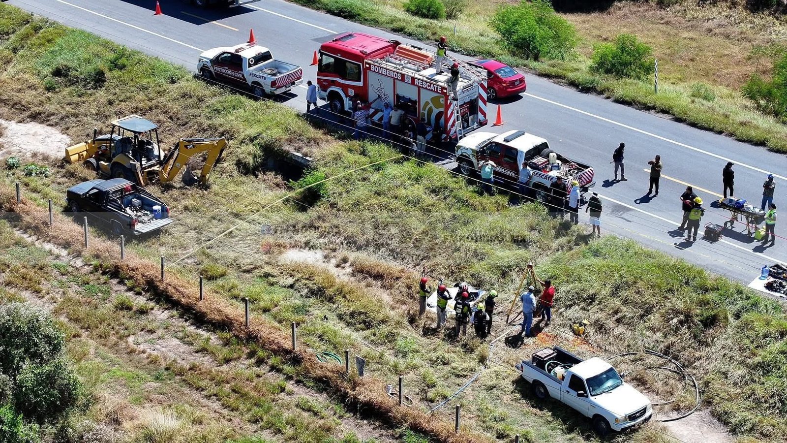 Elementos de Protección Civil Tamaulipas, equipados con tanques de oxígeno autónomo, realizaron el operativo de rescate para recuperar los cuerpos y auxiliar al sobreviviente.