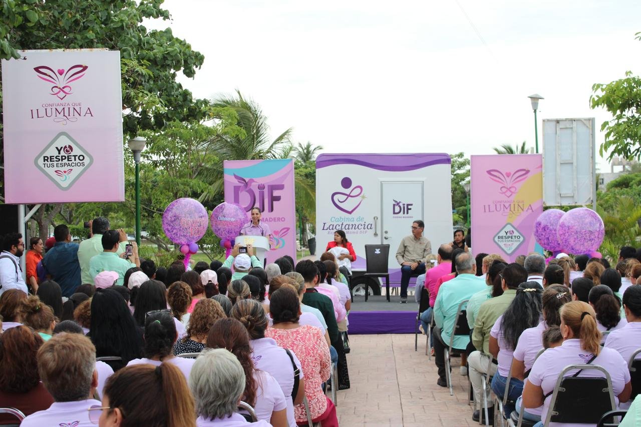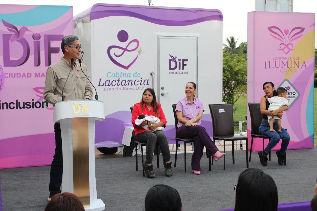 Con el propósito de proporcionar un entorno digno, seguro y cómodo para que las madres puedan amamantar o extraer leche materna de manera adecuada, el Sistema DIF Ciudad Madero, lidereado por su presidenta Lic. Dunia Marón Acuña, inauguró junto al presidente municipal Erasmo González Robledo la primera Cabina de Lactancia en el Parque Bicentenario, en el contexto de la Semana Mundial de la Lactancia Materna.