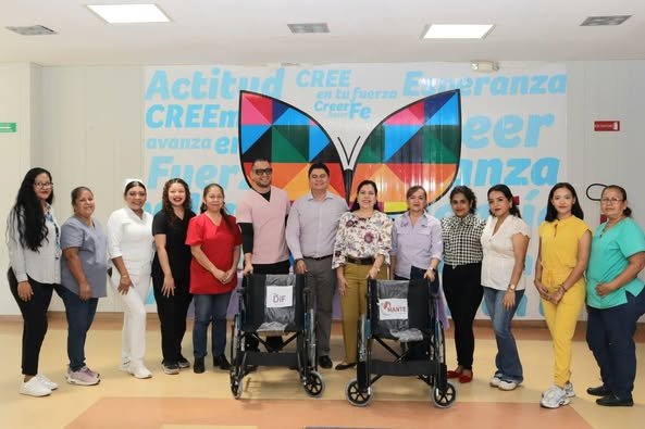 Para mejorar la calidad de atención a pacientes del Centro de Rehabilitación Integral, la Presidenta Municipal Patty Chío entregó uniformes al personal y sillas de ruedas para el traslado de pacientes.