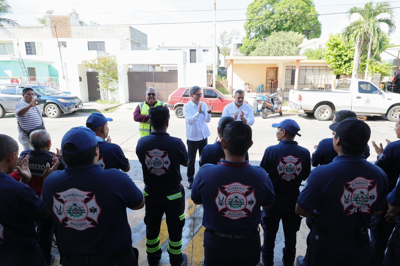 En el marco del Día Nacional del Bombero, el Presidente municipal, Erasmo González Robledo reconoció la heroica labor que realiza la corporación para proteger la seguridad y el patrimonio de los maderenses.