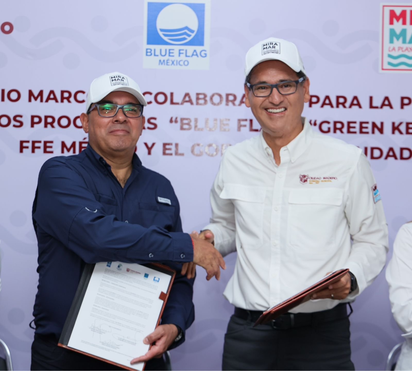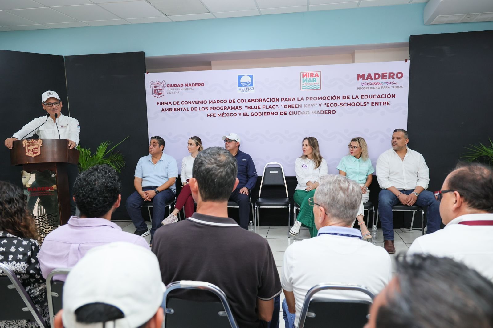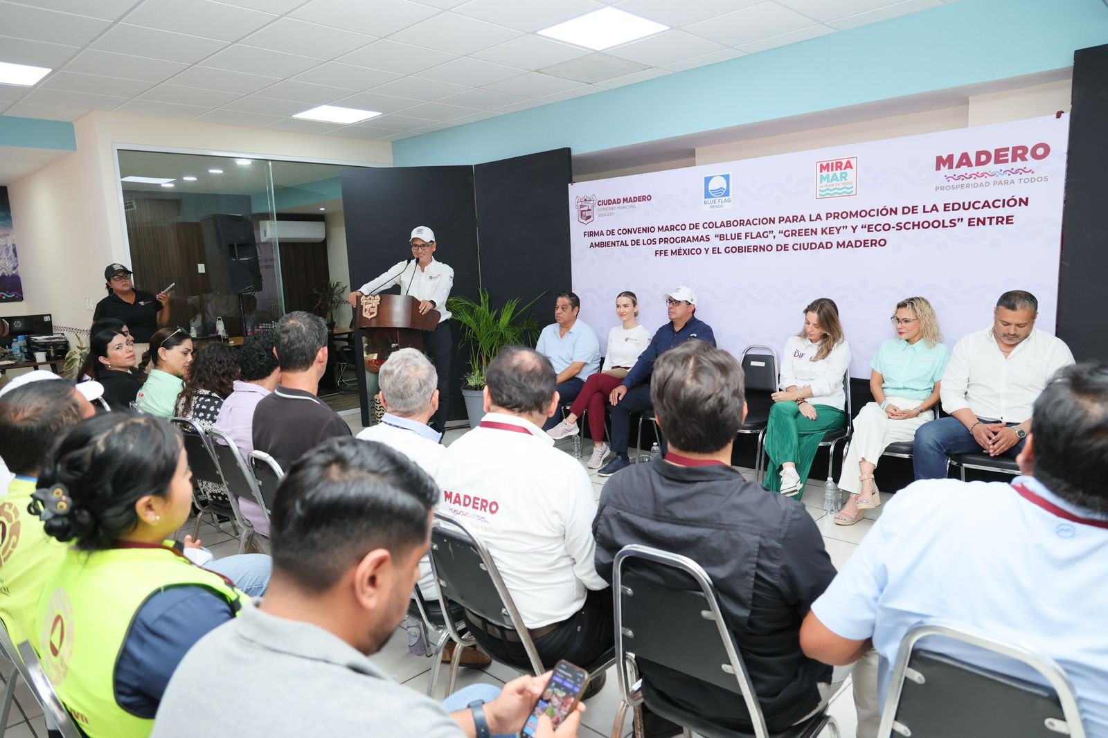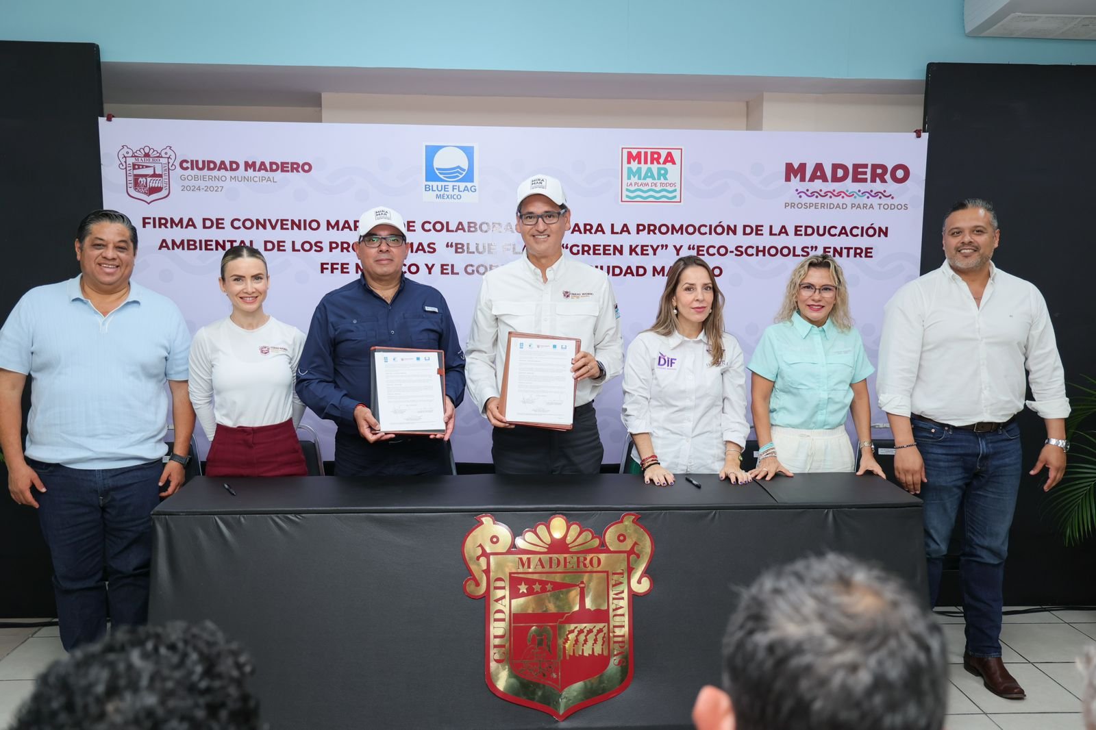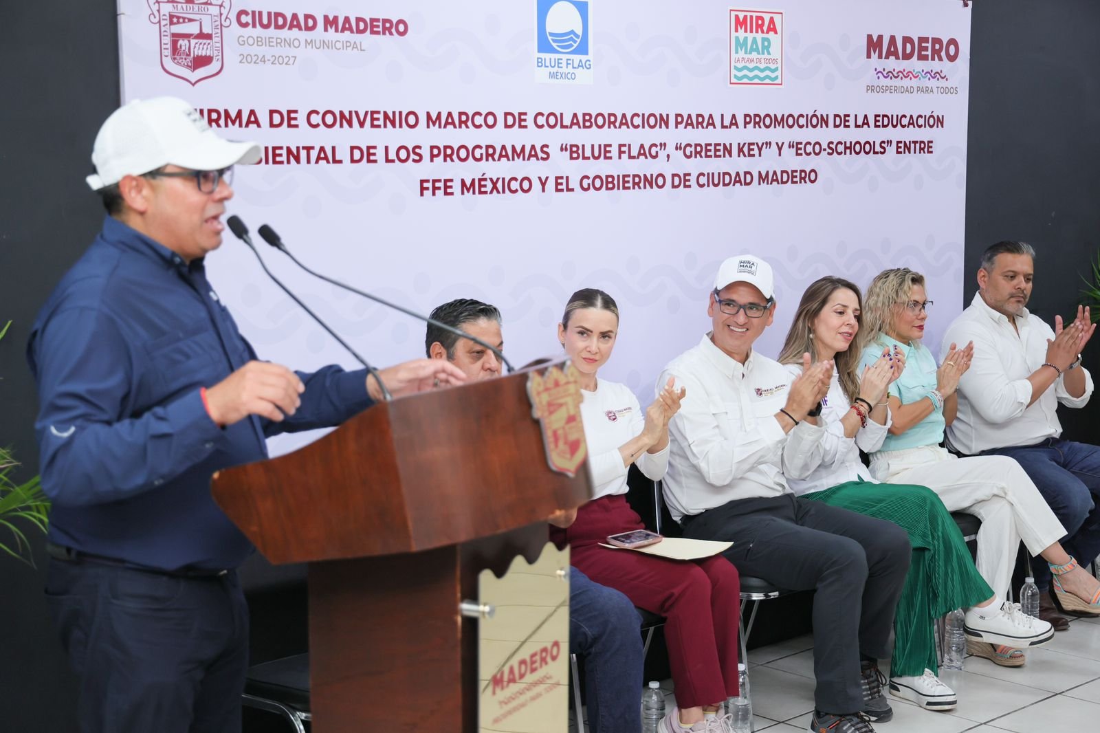 Buscando sumar esfuerzos para fortalecer el cuidado del medio ambiente y el desarrollo sostenible de Ciudad Madero, el presidente municipal, Erasmo González Robledo, firmó un trascendental convenio marco de colaboración con la Fundación para la Educación Ambiental (FEE) México, destinado a la Promoción de la Educación Ambiental y la implementación de los programas “Blue Flag”, “Green Key” y “Eco-Schools”.