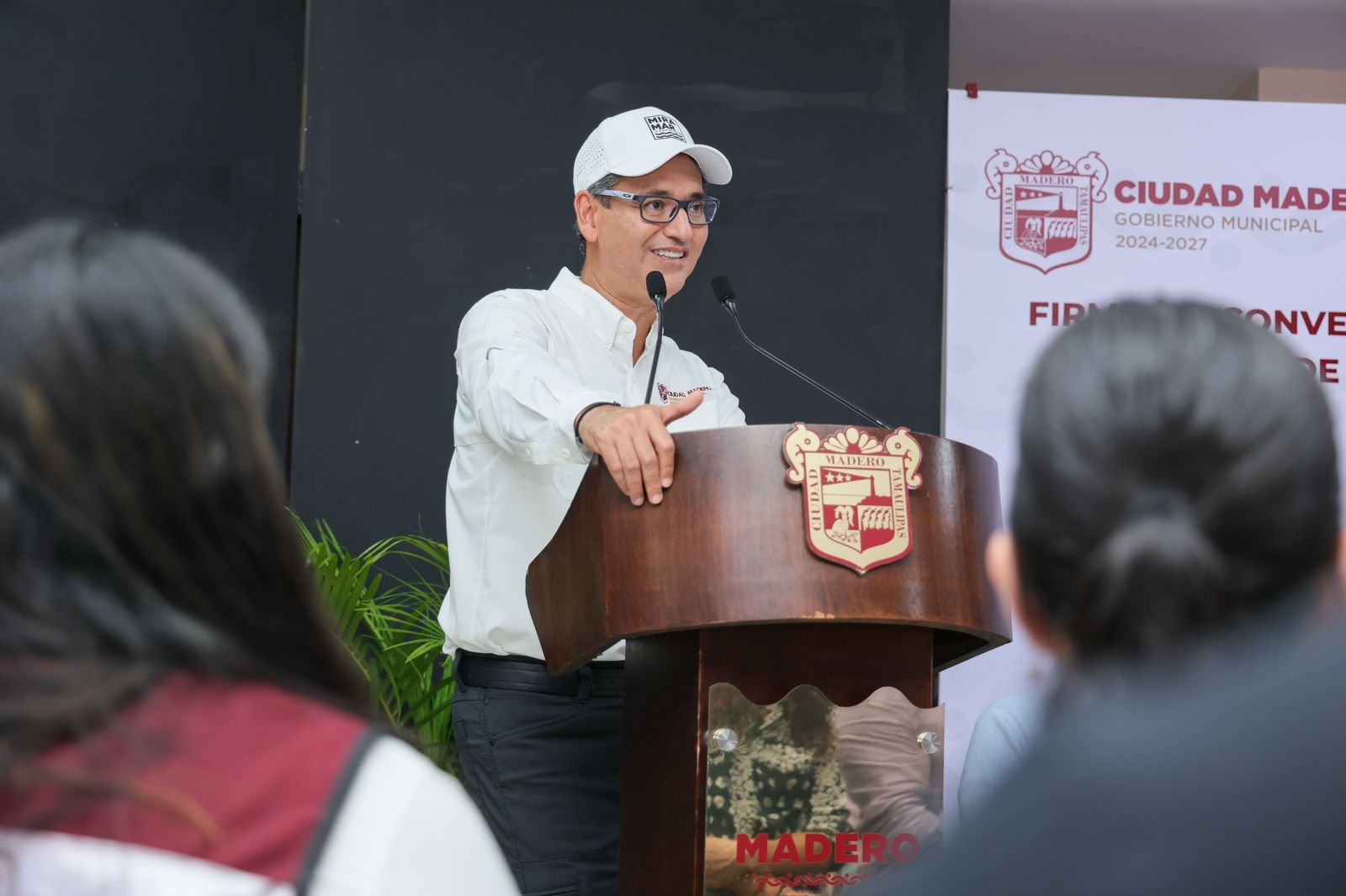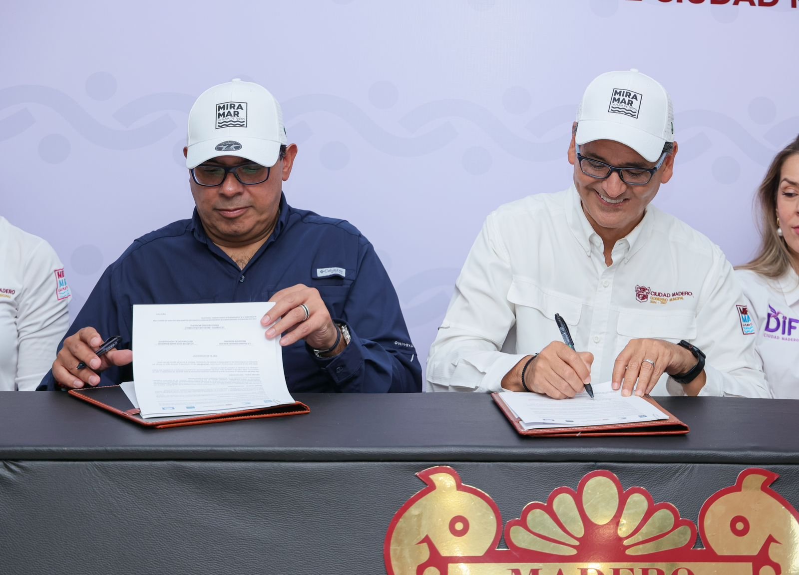 En el acuerdo signado en el Centro de Control y Mando, González Robledo estuvo acompañado por la Lic. Dunia Marón Acuña, presidenta del Sistema DIF Madero; los síndicos Alicia Lerma Cervantes y Roberto Chávez Gutiérrez; así como por la directora general de Turismo, Mariana Varela Garza.
