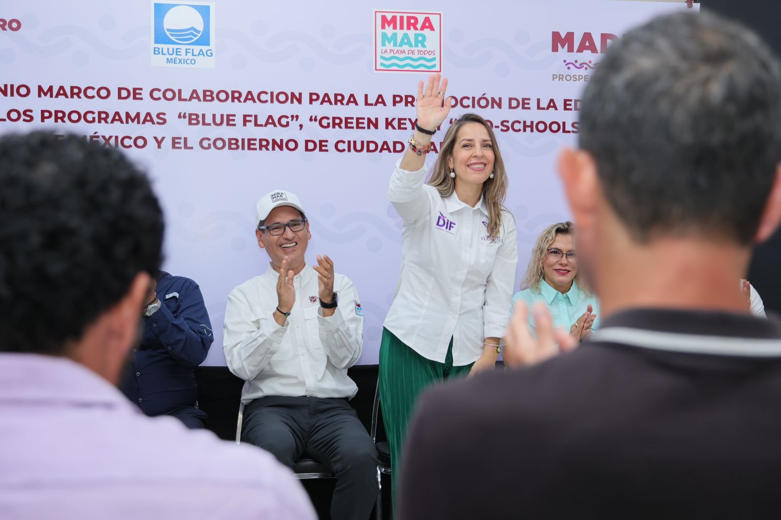 “Nosotros también tenemos mucho interés en certificar esta nueva zona, porque queremos de ahí partir y llevar la certificación también en un alcance mucho más amplio hacia la escollera, que es un punto de referencia, sin duda el más importante que tiene Tamaulipas de visitantes durante el año, la escollera de playa Miramar. Entonces, estamos muy contentos de dar este anuncio y de firmar este convenio marco de colaboración para la promoción de la educación ambiental y la implementación de los programas Blue Flag, Green Key y Eco School, así como reiterar que estamos muy contentos de que playa Miramar siga siendo una playa segura, ordenada y limpia”.