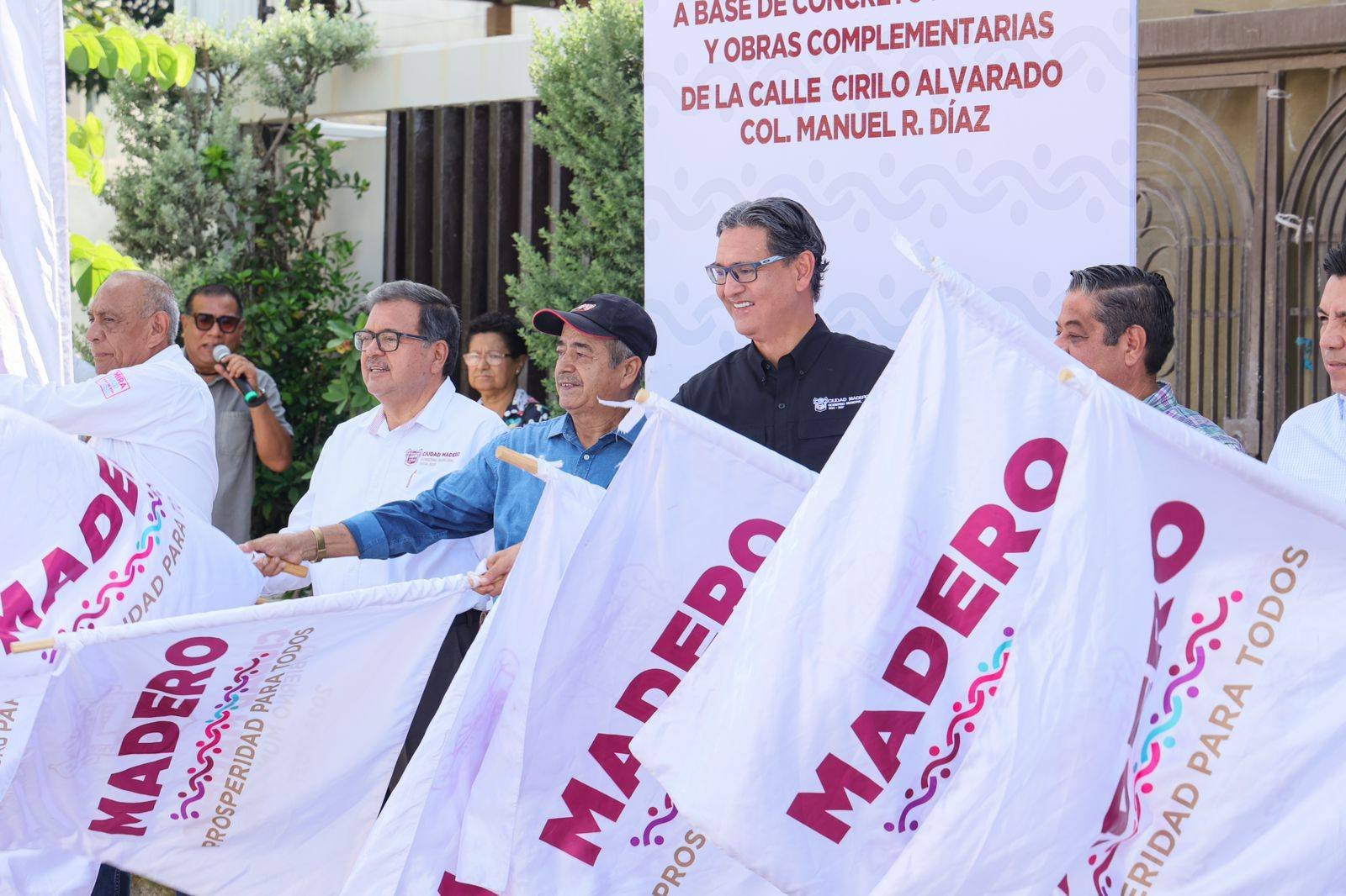 Acompañado por integrantes de su Cabildo y funcionarios de la administración municipal, el alcalde maderense puso en marcha los trabajos en la calle Cirilo Alvarado de la colonia Manuel R. Díaz, en donde subrayó que estas acciones forman parte del paquete de 200 millones de pesos de inversión pública para este año, del cual ya se ha alcanzado casi el 85%.