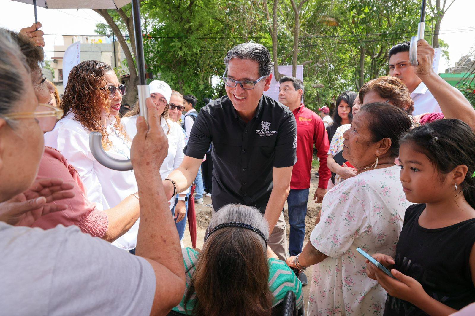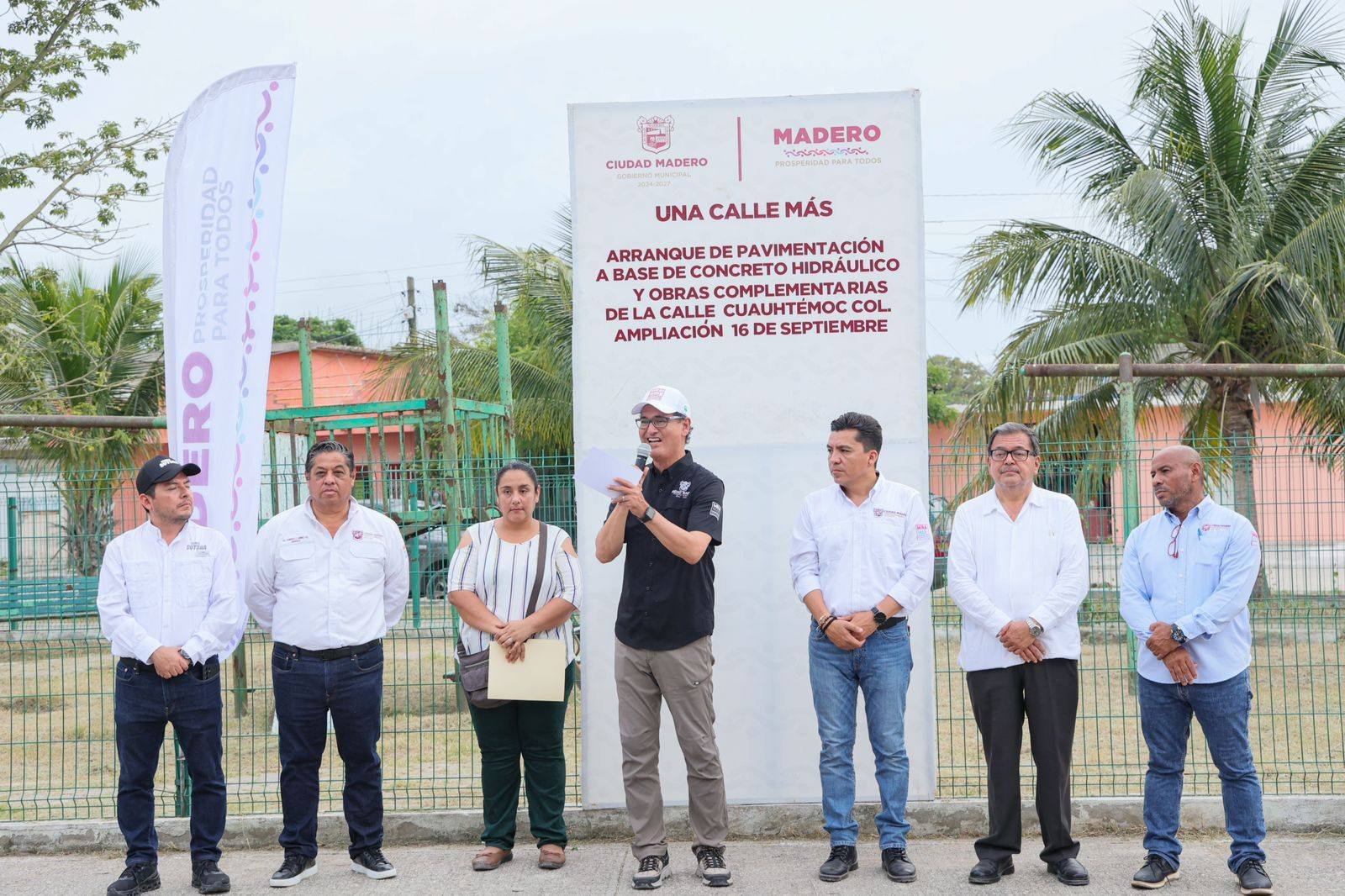 Erasmo González llegó por la tarde a la colonia 16 de Septiembre, donde se arrancaron las obras de pavimentación a base de concreto hidráulico en la calle Cuauhtémoc entre Toltecas y Olmecas, con una inversión superior a los 5.6 millones de pesos.