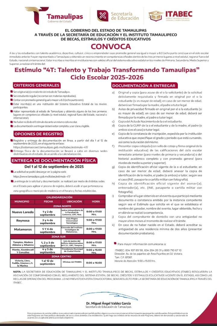 Estímulo “4T: Talento y Trabajo Tranformando Tamaulipas “.