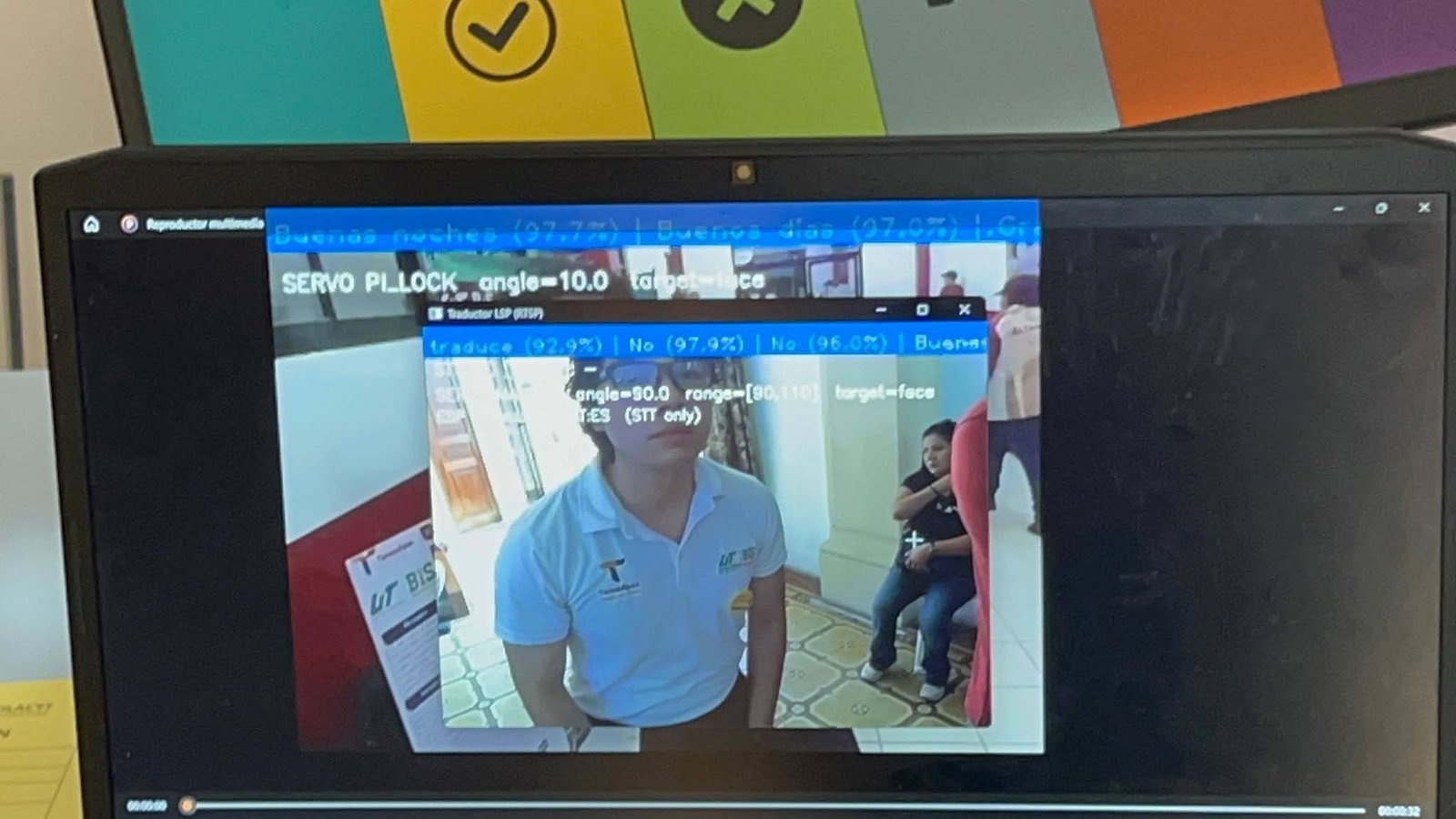 El funcionamiento se basa en una cámara con estabilizador conectada a una microcomputadora que envía la información a un servidor donde opera una inteligencia artificial desarrollada por ellos mismos. Esta IA analiza 21 puntos clave de la mano y sus coordenadas para reconocer gestos después de un proceso de entrenamiento. “La inteligencia artificial predice cada gesto y permite que exista una comunicación bidireccional para que ambas personas puedan entenderse”, detallaron.