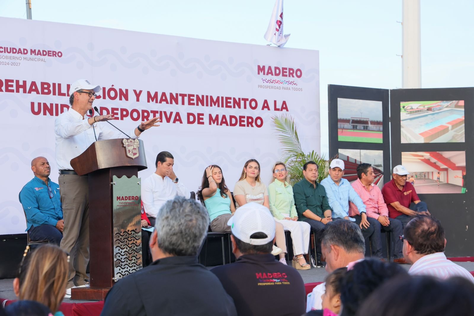 Mientras que, en la rehabilitación y mantenimiento de la Unidad Deportiva de Ciudad Madero, ubicada en el sector Héroe de Nacozari, se invertirán casi 8.4 millones de pesos para los trabajos de la primera etapa que comprende 6 áreas específicas como lo son: gimnasio multidisciplinario, campo de futbol 7, alberca olímpica, área de cafetería, fachada frontal y área de gradas, baños y espacios deportivos.