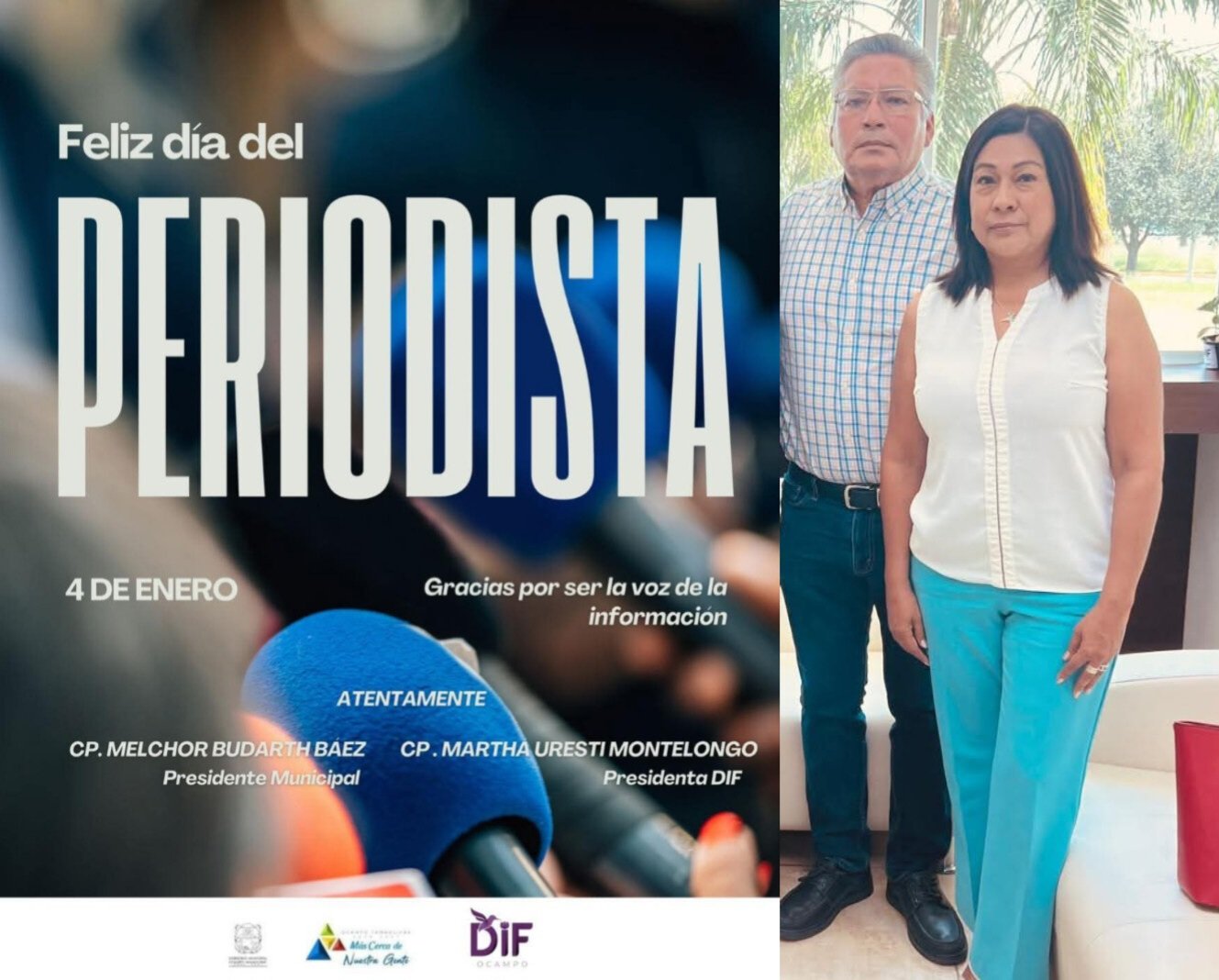 Ocampo, Tamaulipas.– En el marco de la conmemoración del Día del Periodista, el presidente municipal de Ocampo, Melchor Budarth Báez, y la presidenta del Sistema DIF Ocampo, Martha Uresti Montelongo, reafirmaron el firme compromiso de su administración con la libertad de expresión y el respeto al ejercicio periodístico.