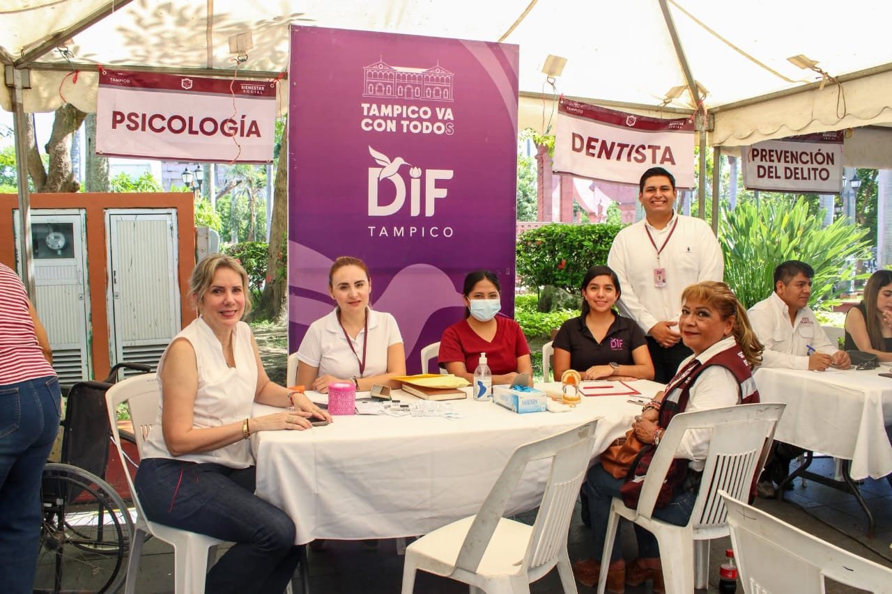 La jornada incluyó módulos de atención del IMSS-Bienestar, COMAPA, Instituto de la Mujer, Servidores de la Nación, Servicios Públicos, reparación de electrodomésticos, así como del Sistema DIF Tampico, que brindó consultas dentales.