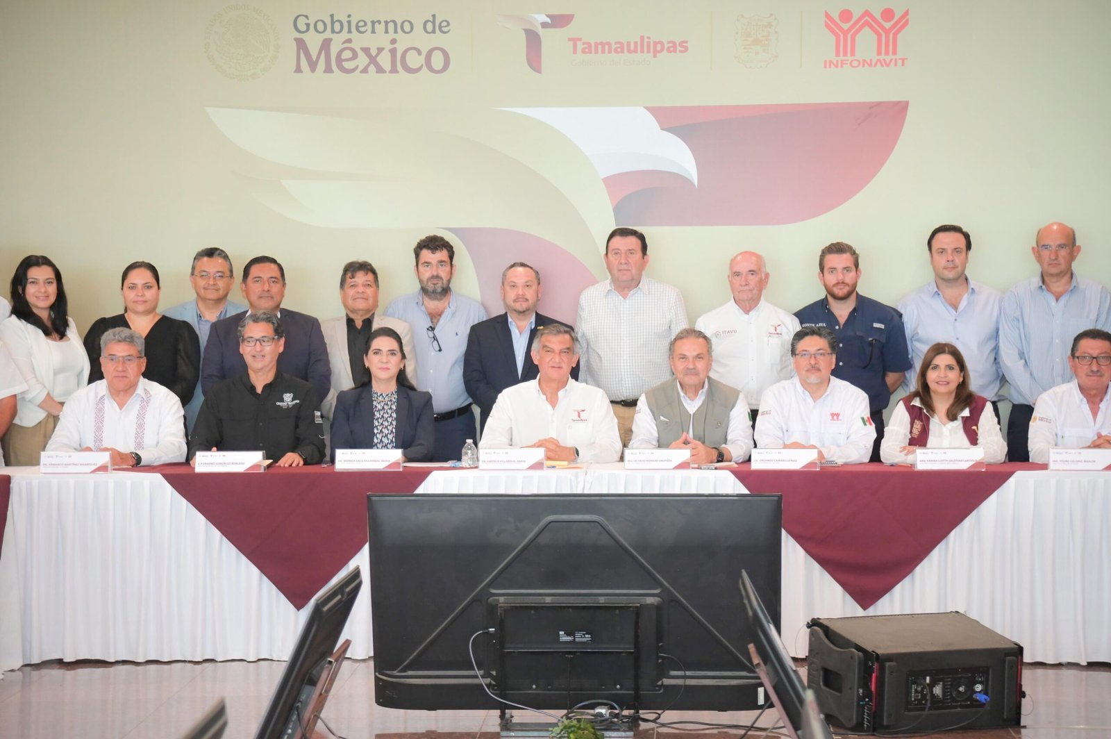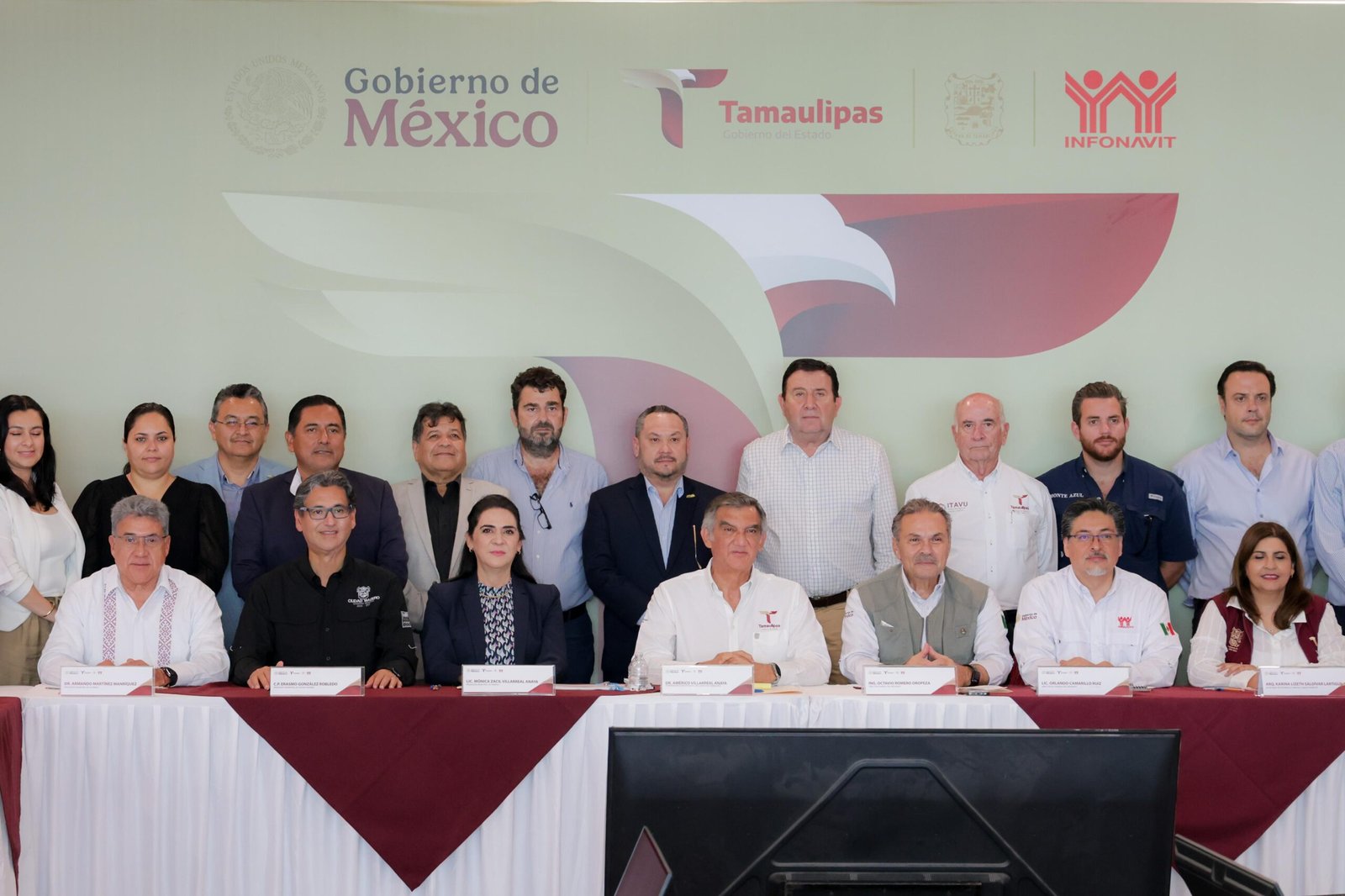 En la reunión estuvieron presentes también la Secretaria de Desarrollo Urbano y Medio Ambiente, Karina Lizeth Saldívar Lartigue; el Delegado de INFONAVIT en el Estado, Claudio Aquiles Villanueva Vázquez; el presidente de la Cámara Mexicana de la Industria de la Construcción en Tamaulipas, Pablo Eduardo Haro Panduro, Jorge René Guajardo Maldonado, vicepresidente de la Cámara Nacional de la Industria de Desarrollo y Promoción de Vivienda (CANADEVI), así como dirigentes de organismos empresariales y de la construcción.