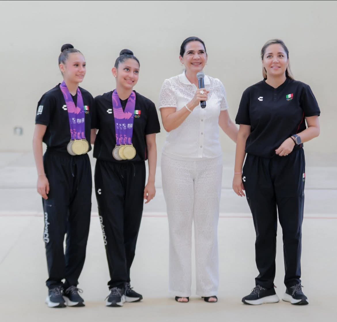 De igual forma, se reconoció el liderazgo de la maestra Citlali Quintá Álvarez, originaria de Tampico, actual entrenadora de la Selección Nacional Juvenil y coordinadora de Gimnasia de la Secretaría del Deporte, quien desde el Centro Nacional de Alto Rendimiento (CNAR) ha sido pieza clave en la formación de estas campeonas.