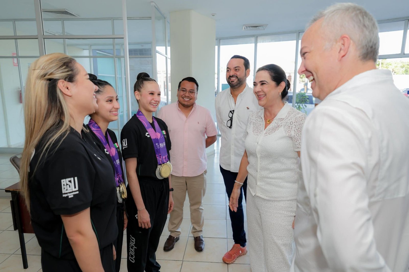 Acompañada por el Secretario de Deportes, Enrique Fernando Tamayo Medina, la alcaldesa reconoció el esfuerzo, disciplina y talento de las atletas, a quienes calificó como un orgullo para Tampico, Tamaulipas y México.