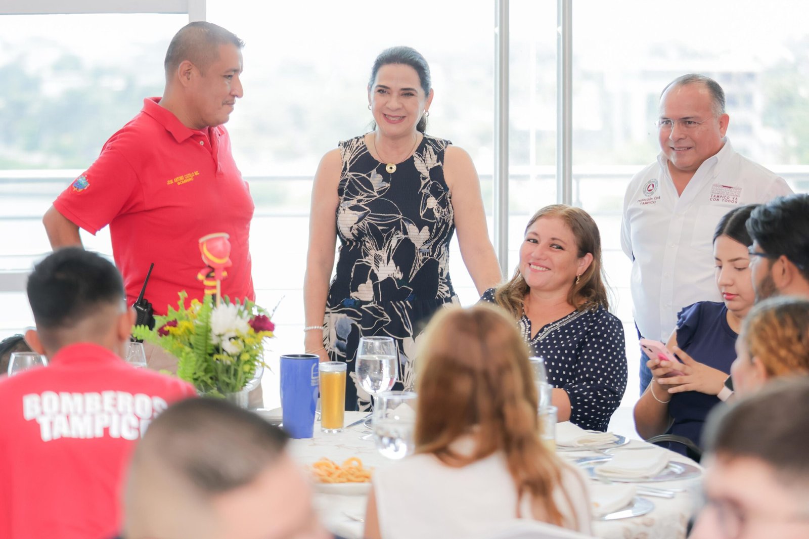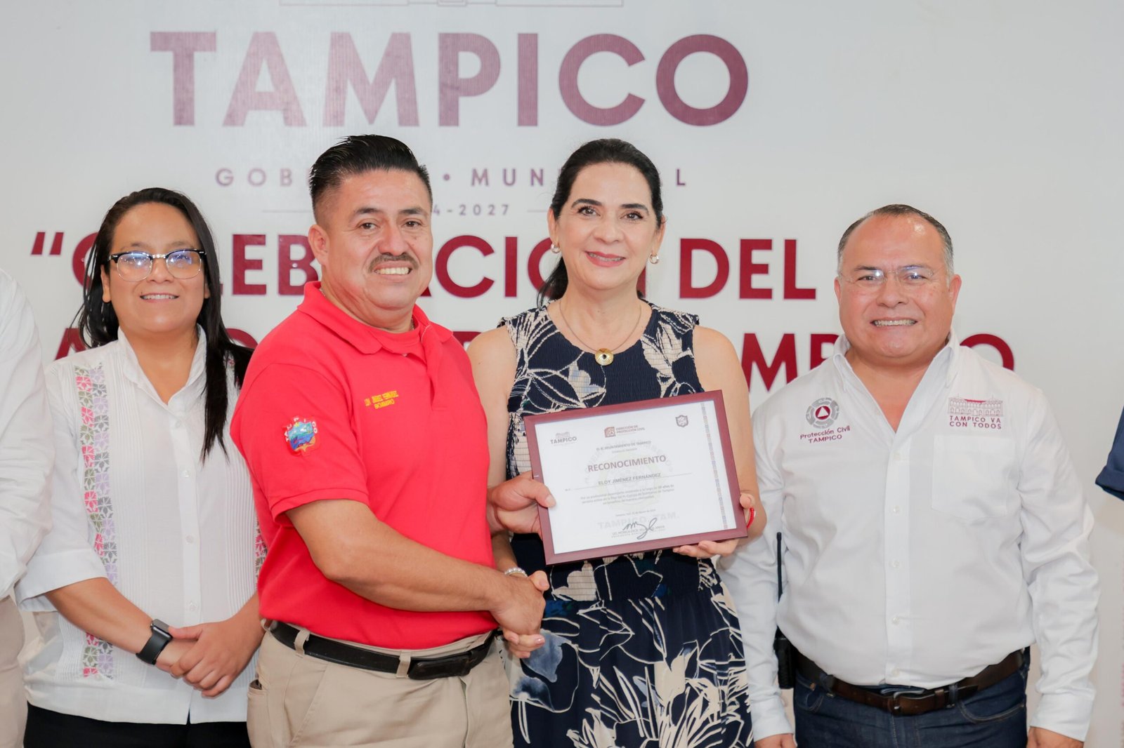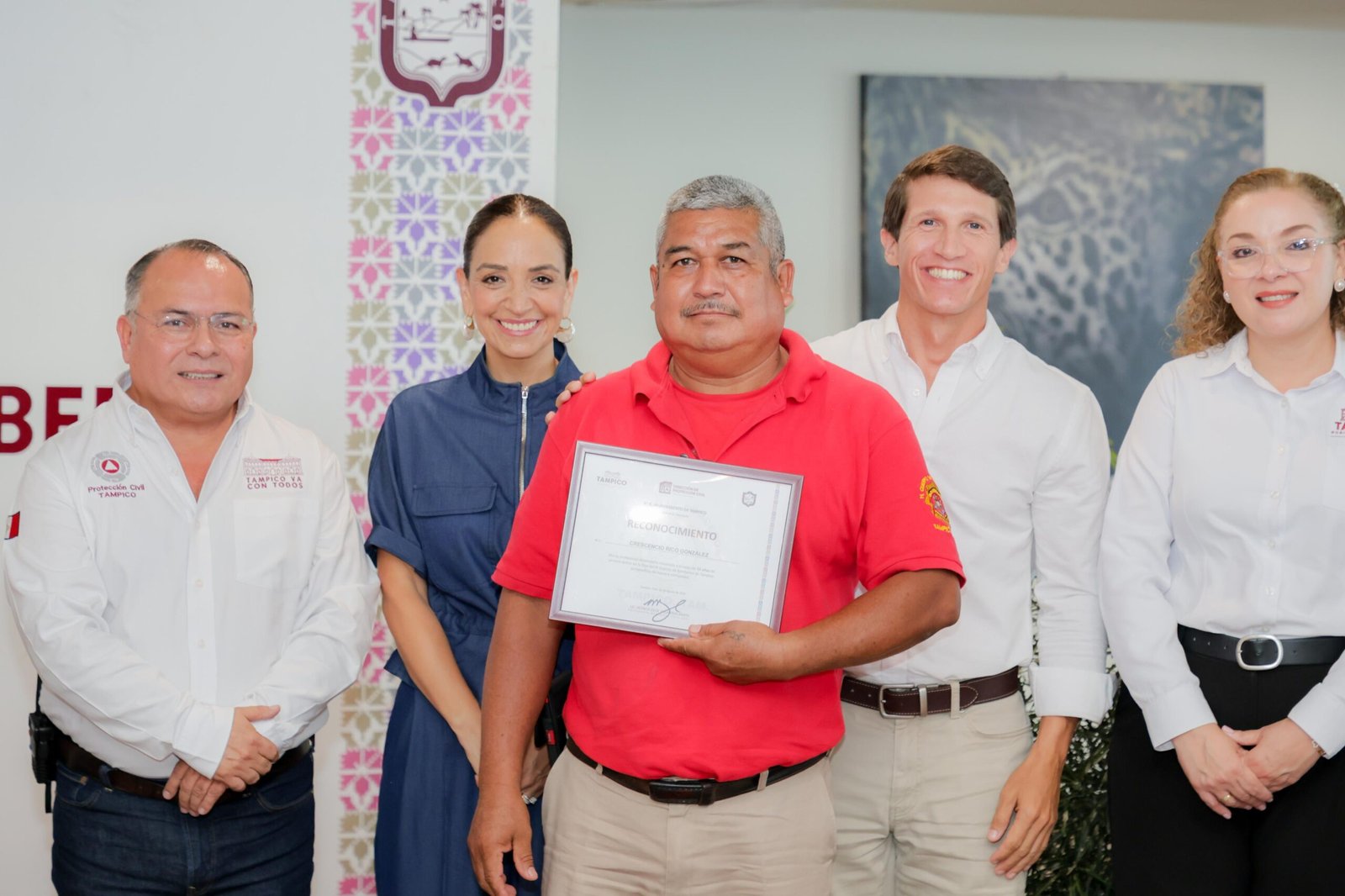 Acompañada por el director de Protección Civil de Tampico, José Antonio Marín Flores, el Subdirector de Protección Civil de la zona sur, Rafael Chirinos Aguilar, así como de síndicos y regidores, la alcaldesa destacó la labor de los 37 elementos activos y agradeció la colaboración con Protección Civil del Estado lo que ha fortalecido las acciones preventivas y de atención a emergencias.