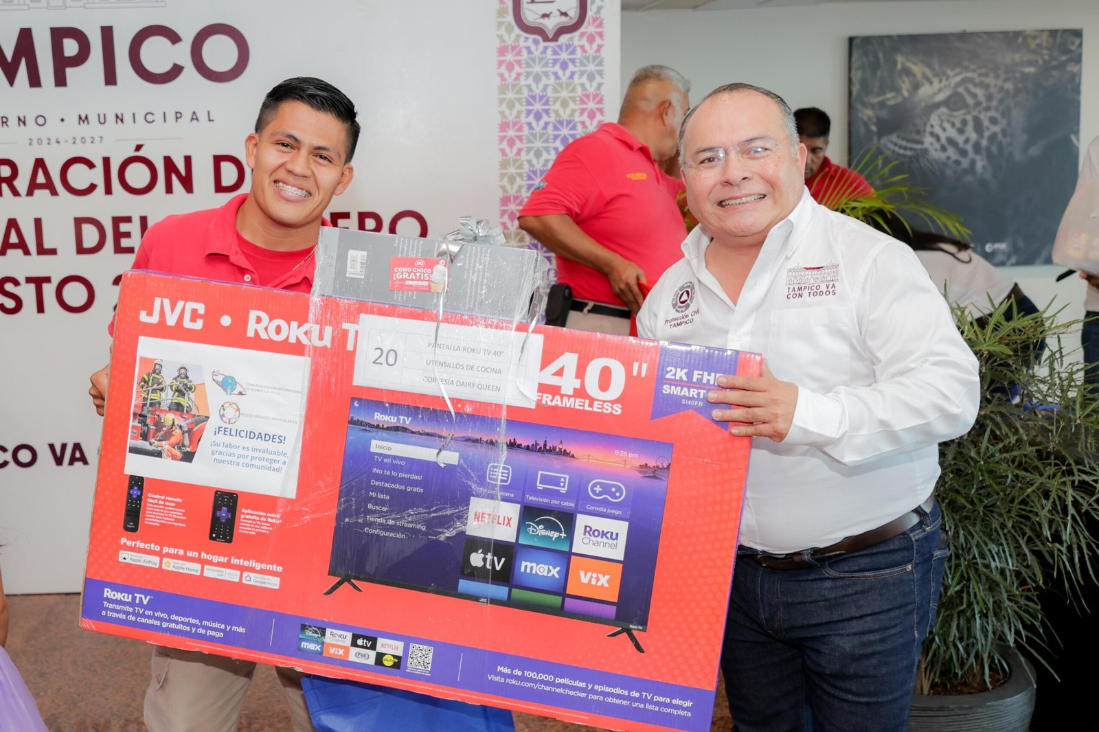 Finalmente, el festejo concluyó con una comida en honor a los bomberos y la tradicional rifa de regalos, como parte del homenaje a quienes arriesgan su vida por el bienestar de la comunidad tampiqueña.